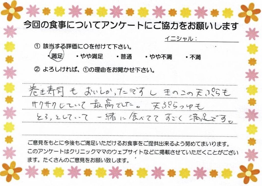 エビマヨ+あおさ チリソース、ビーツ+ココナッツ等 自身では作らない面白い味が多く、毎食楽しんでおります。授乳、体力回復のために( 影ながら )ご尽力いただき、感謝しております。ごちそうさまでした。