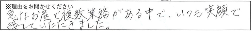 細めに声をかけてもらえて、とても助かりました。